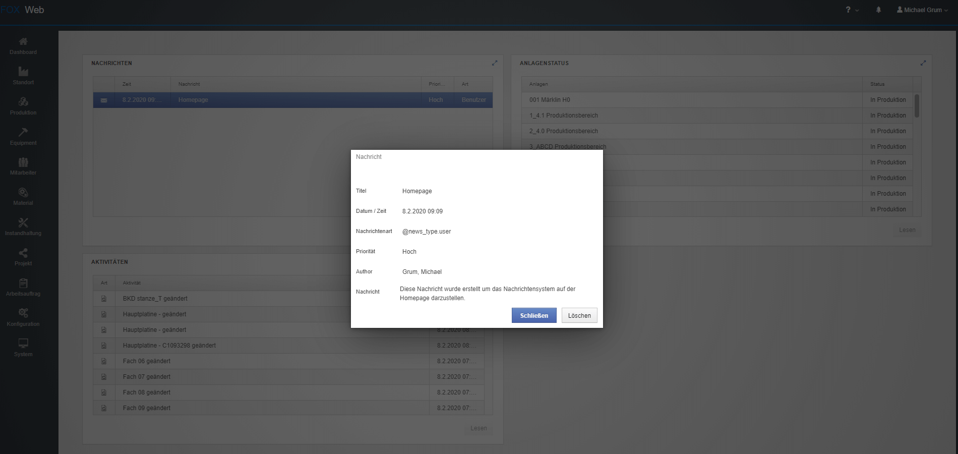 Nachrichten, lassen sich einfach erstellen und den betreffenden Mitarbeitern zuweisen, die diese Nachricht dann im Dashboard einsehen können.